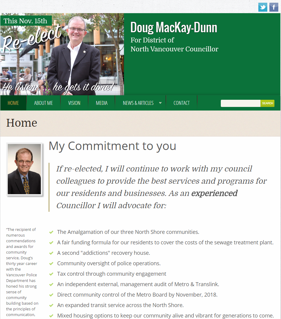 Councilor Doug MacKay-Dunn needed a simple website to promote his re-election campagin. After an interview with him and listening to his concerns and requirements I decided that what he needed could be accomplished with WordPress.